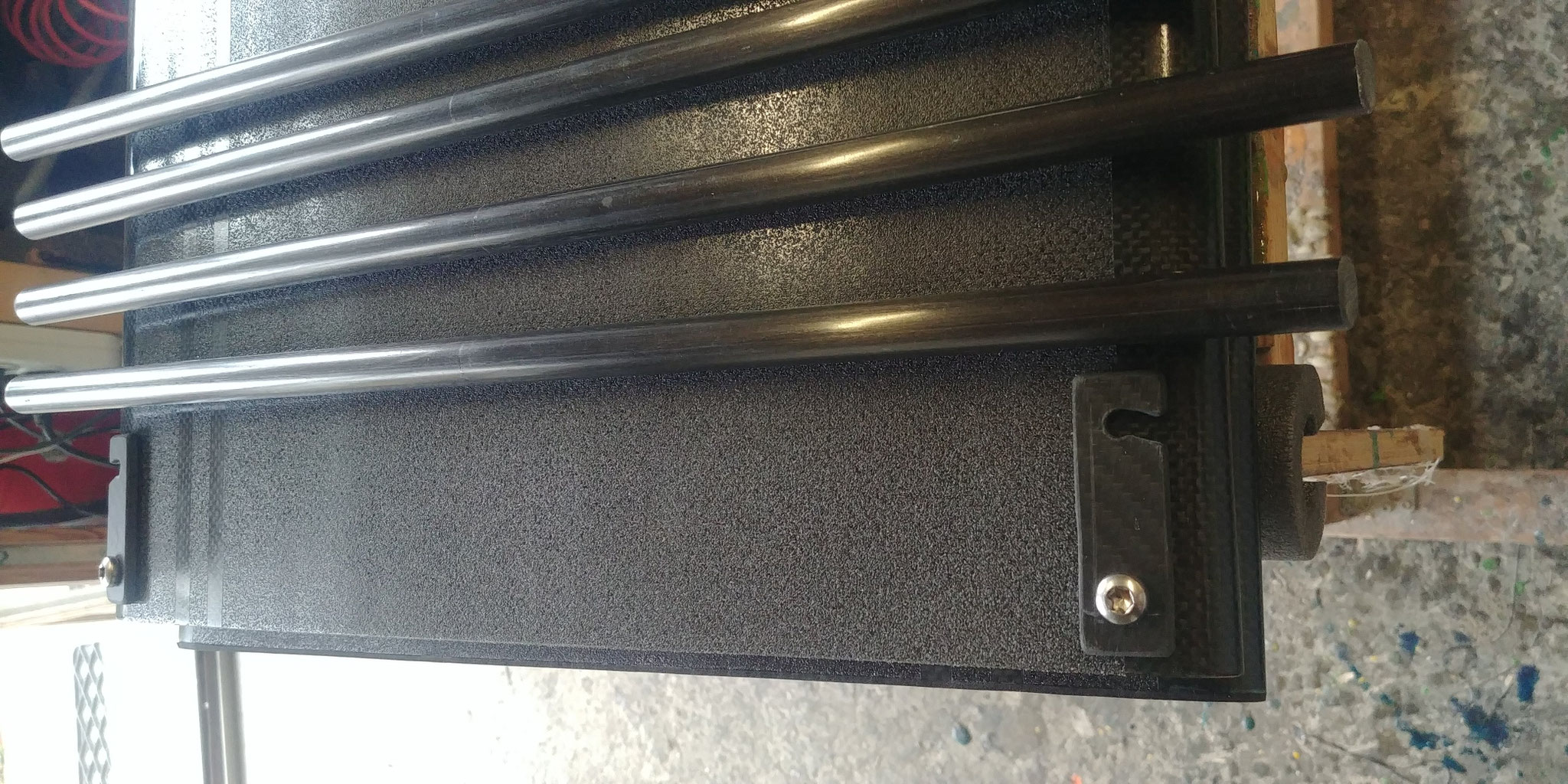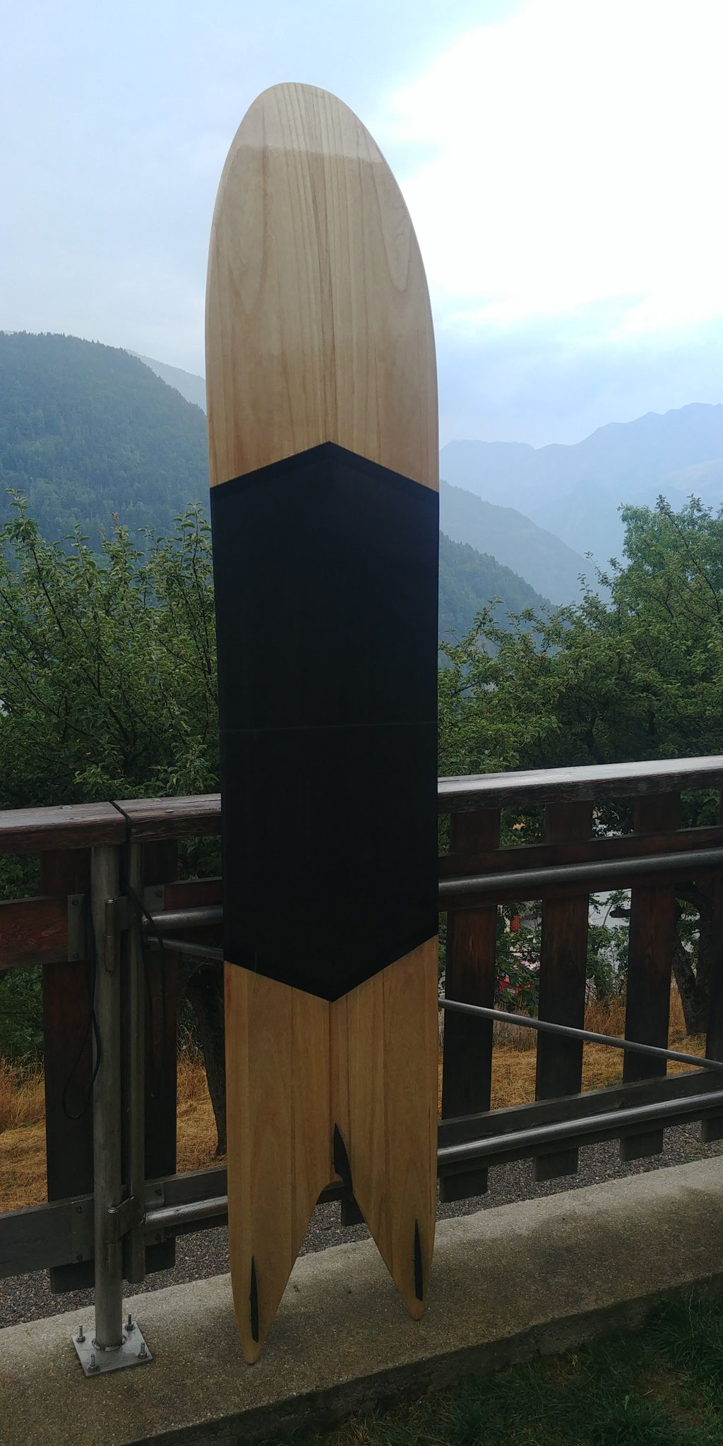 Fabrication en fibre de verre et renforts central en fibre de carbone.