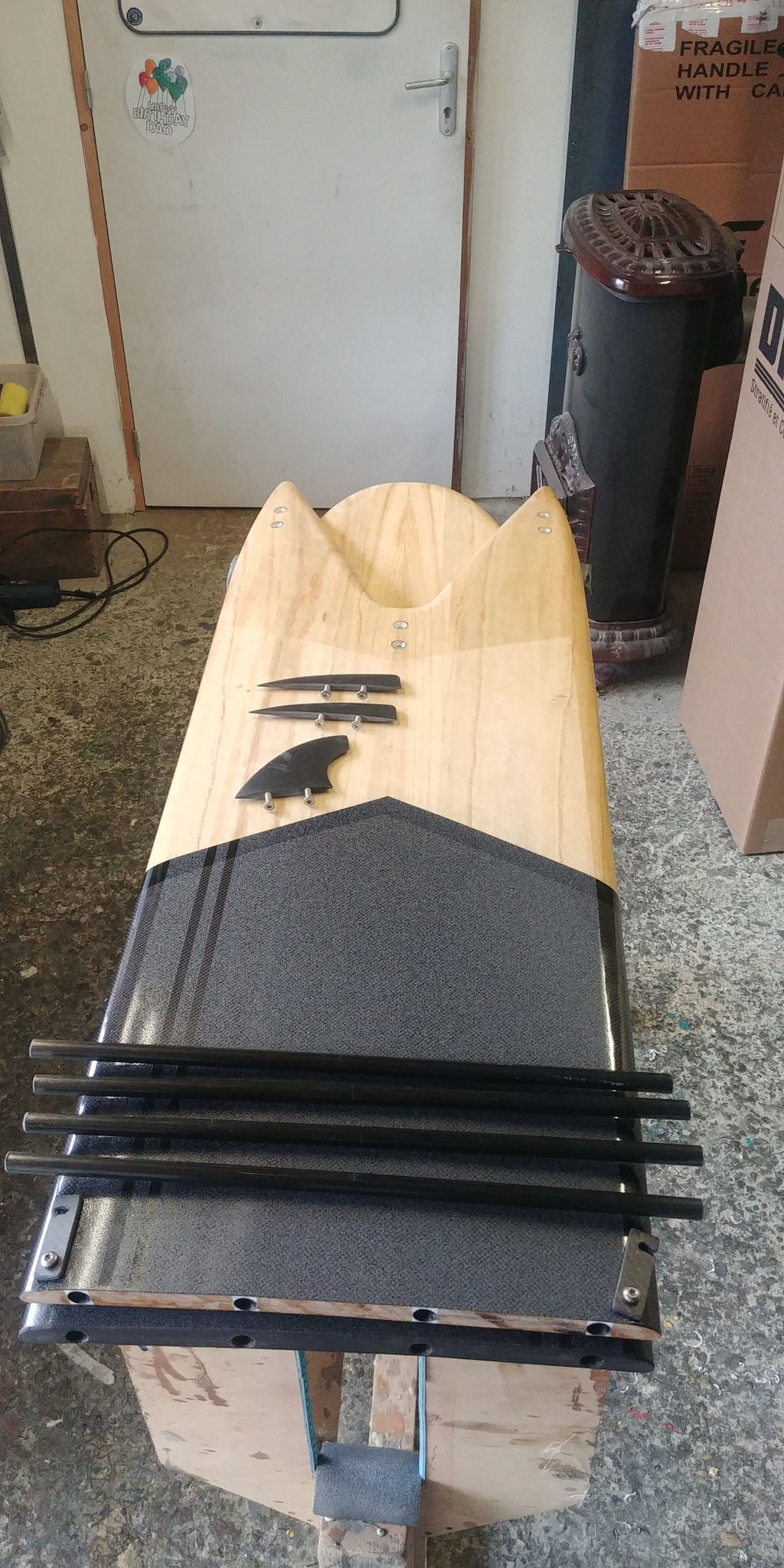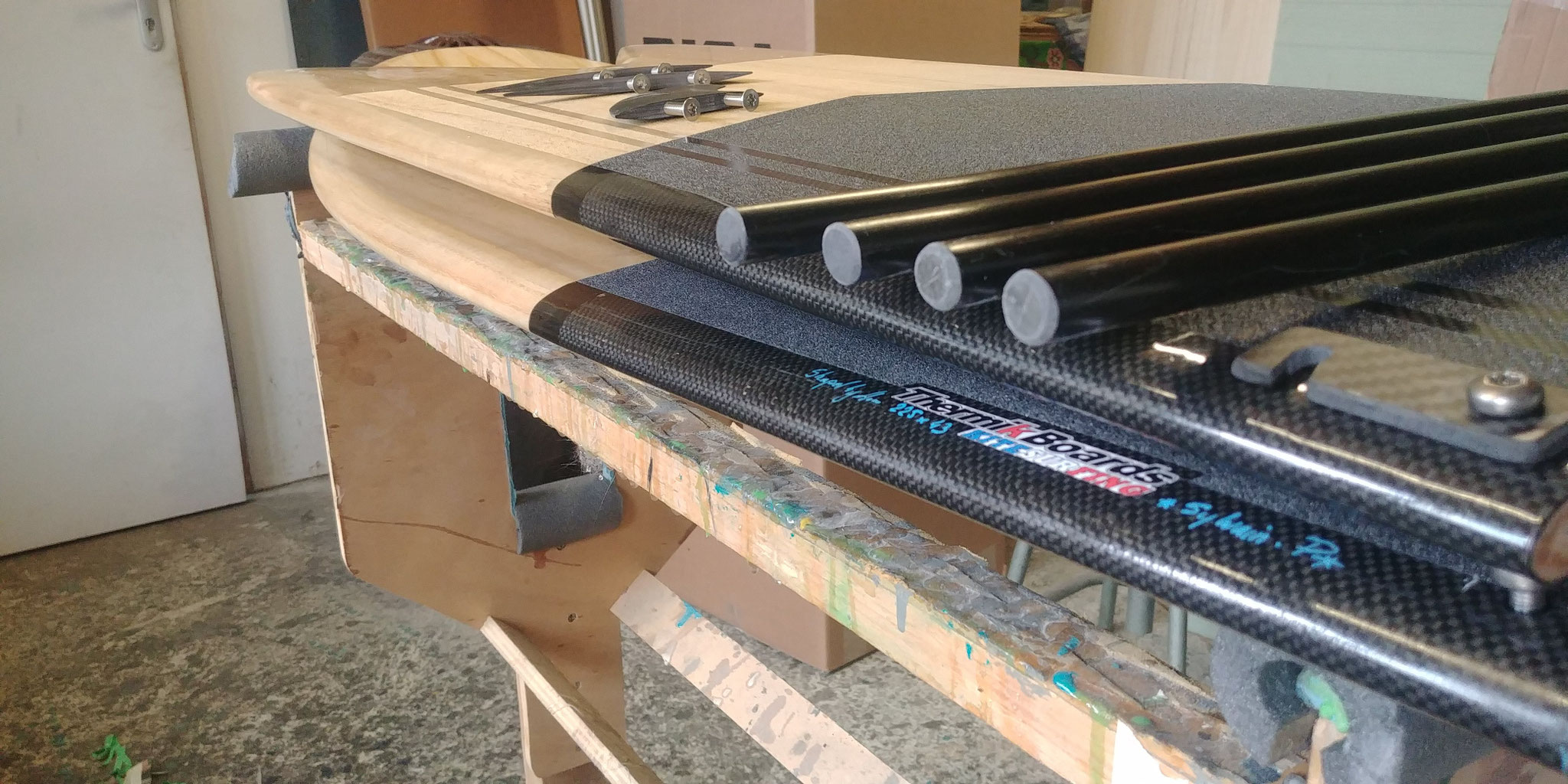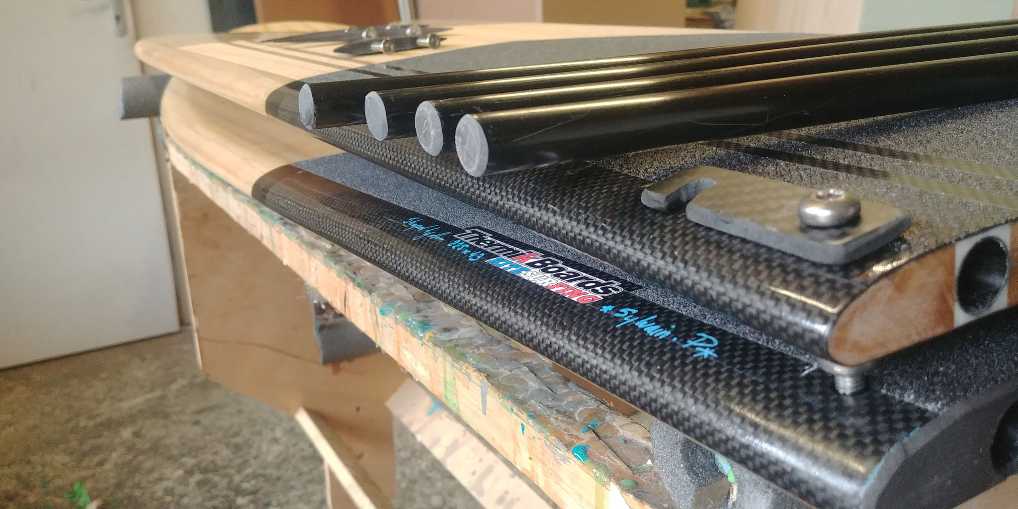 Système Split en joncs carbone + renforts carbone sur pont et carène.